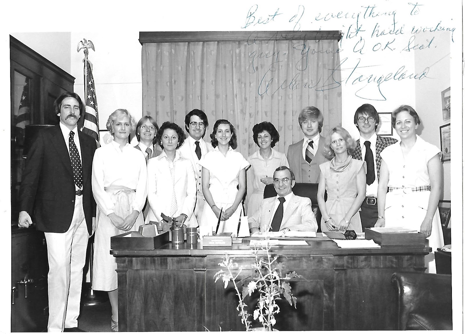 [Staff of Rep. Arlen Stangeland (R-MN) 1978. Scot Faulkner is 5th from left]